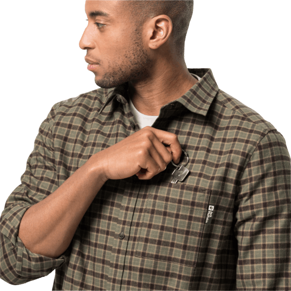 Erkek Bergweg Gömlek Tozlu Zeytin çekler Marka Jack Wolfskin