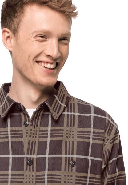 Koyu Meşe çekler Kabin Görünümü Gömlek M Sıcak Jack Wolfskin
