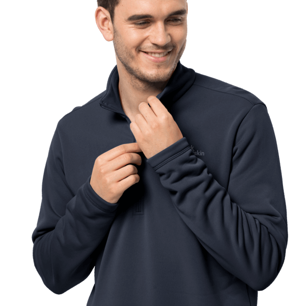 Ana Sayfa| Erkekler| Ceketler| Orta Katmanlar Ve Polarlar| Moda Erkek Baiselberg Yarım Fermuarlı Jack Wolfskin Gece Mavisi