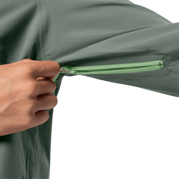 Tırmanış Gerçekten Yorucu Olursa, Ek Havalandırma Için Pit Fermuarlarını Açmanız Yeterli. Ve Nihayet Yağmur Dindiğinde Ve Ceket Gereksiz Hale Geldiğinde, Onu Kalça Ceplerinden Birine Tıkabilir Ve Sırt çantanıza Koyabilirsiniz.