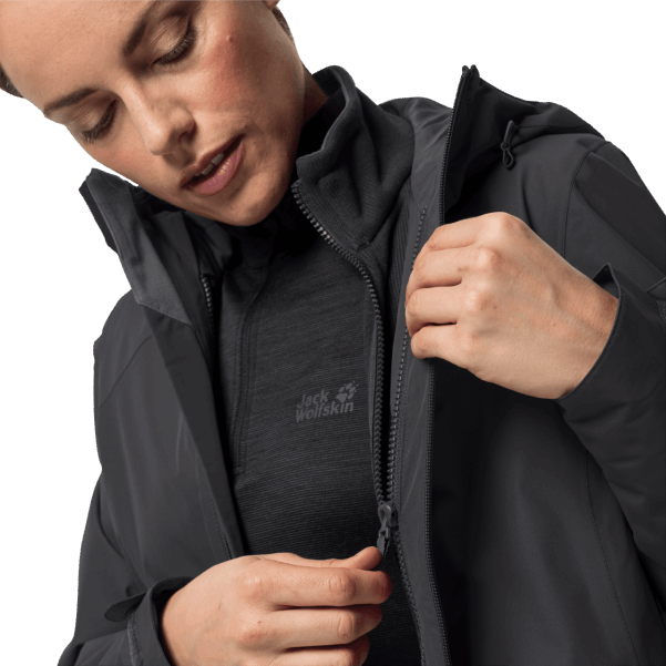 Kabuk Ceket Için Teksapor Kumaşımızın çok Yumuşak Bir Versiyonunu Seçtik. Pamuk Gibi Hissettirir Ancak Amansız Yağmurda Bile Sizi Kuru Tutar. Ayrıca çok Nefes Alabilir, Bu Da üstün Iklim Konforu Sağlar Ve Böylece Fiziksel Performansınızı Artırır.