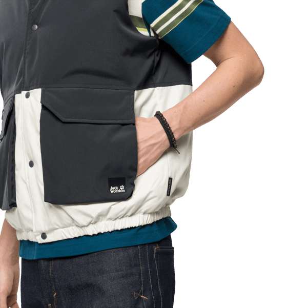Bu Yelek, Modern Renkli Blok Tasarıma, Geri Dönüştürülmüş Sentetik Elyaftan Yapılmış Sıcak Tutan Bir Yalıtım Malzemesine Ve Rüzgar Geçirmez Bir Dış Kumaşa Sahiptir. Ceket, önemli Parça Ve Parçalarınız Için Iki Büyük El Cebine Sahiptir.